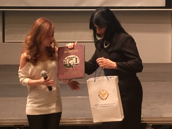 В завершении своего выступления, Камила Гаджимурадовна вручила представителю Организации современного искусства YARAT подарочный экземпляр книги о старом Дербенте и сборник произведений Ахмедхана Абу-Бакара.
