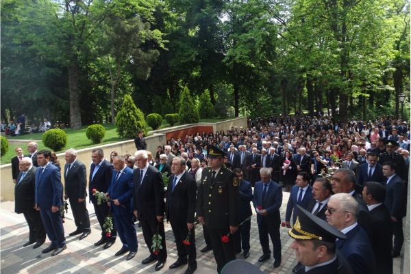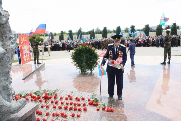 9 мая Представитель Республики Дагестан в г. Баку Азербайджанской Республики М.А. Аскендеров в составе делегации Посольства Российской Федерации в Азербайджанкой Республике принял участие в праздновании Дня Победы у Мемориала Воинской Славы в Наримановском районе г. Баку.